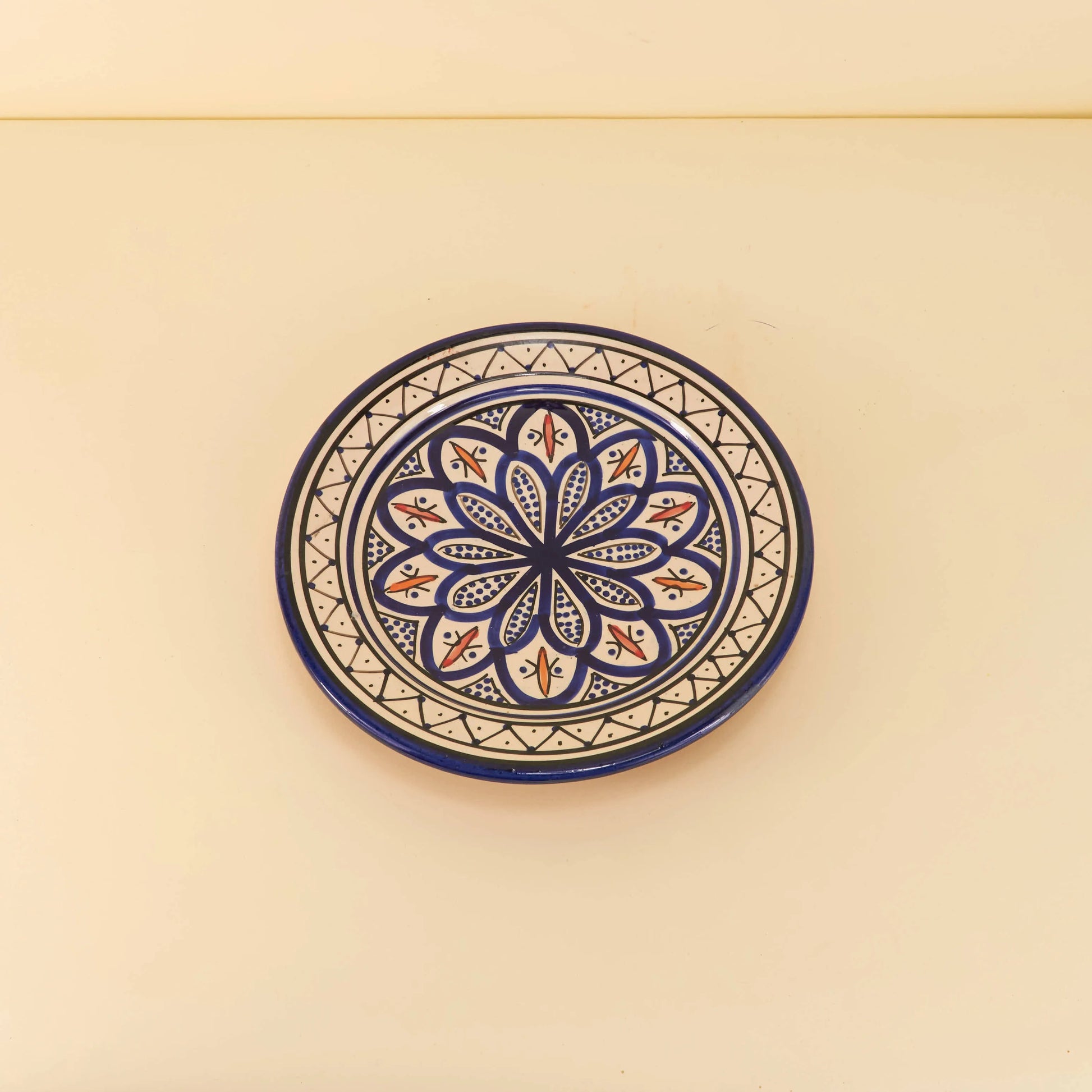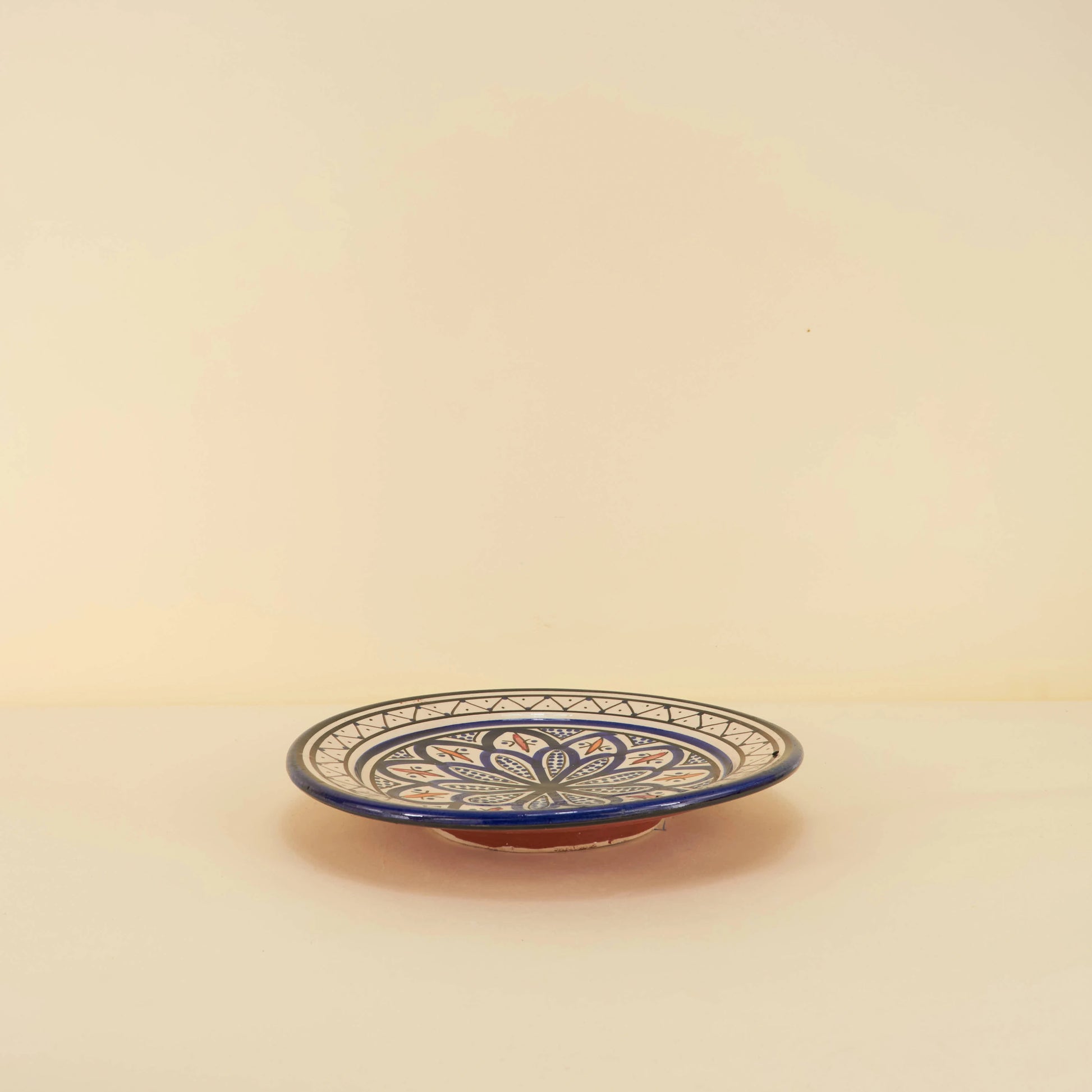 Breng een vleugje oosterse elegantie in je huis met dit prachtige aardewerk bord. Het bord heeft een diameter van 23 cm en is met de hand beschilderd met een schitterend bloemmotief in rijke tinten blauw en rood. Perfect voor zowel dagelijks gebruik als speciale gelegenheden. Laat je tafel stralen met dit unieke stuk!