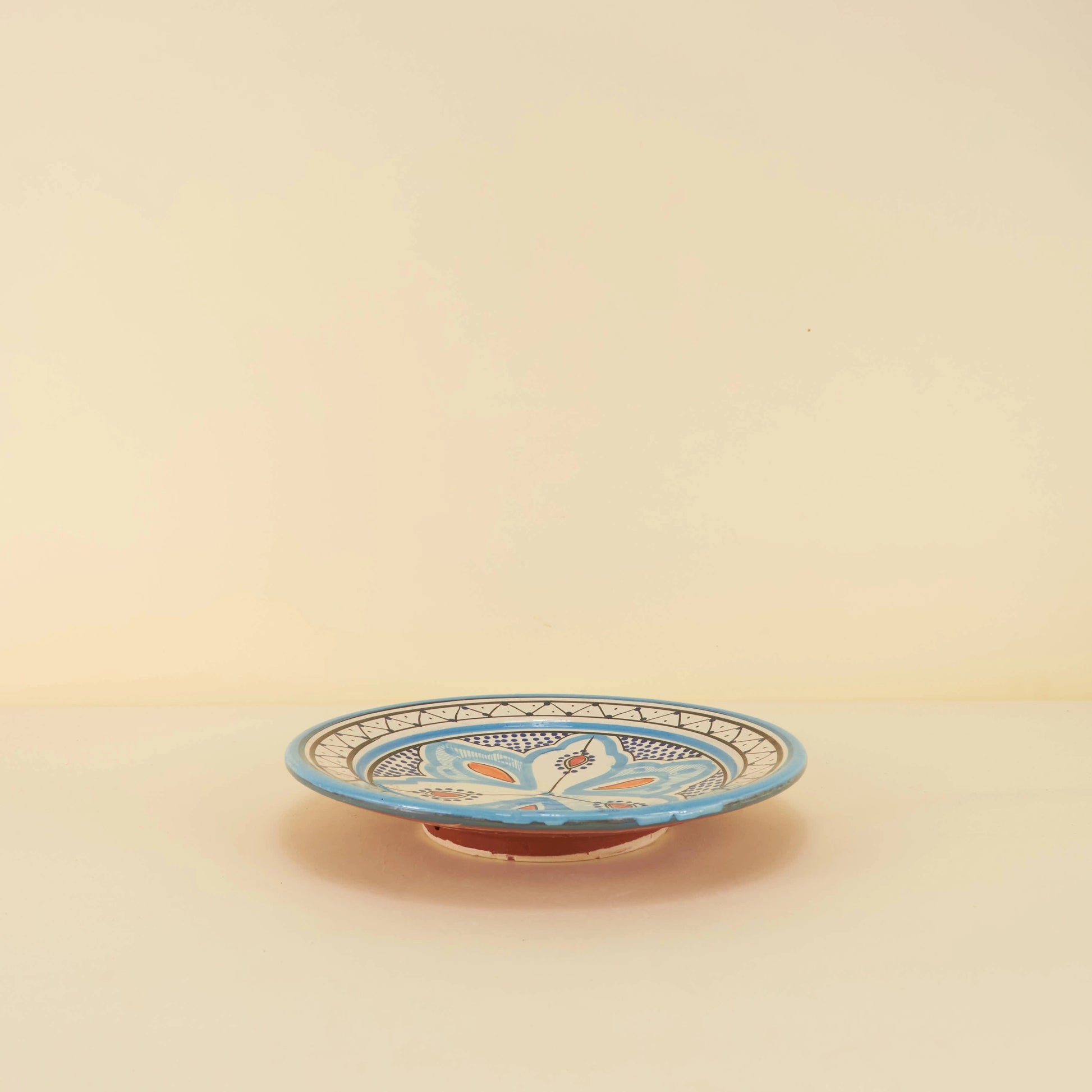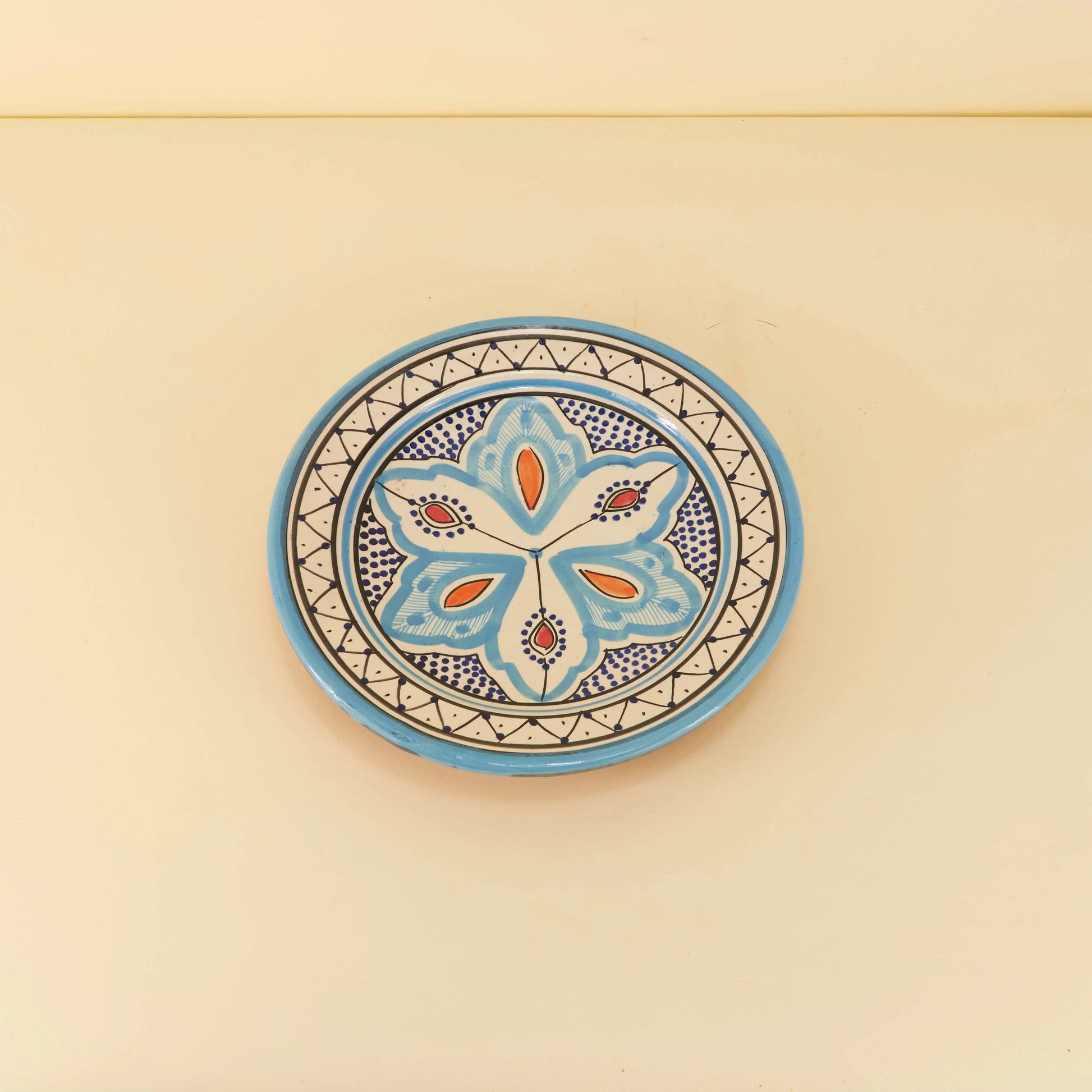 Dit prachtige aardewerk bord van 23 cm is met de hand beschilderd in een betoverend oosters patroon. De levendige blauwtinten en de delicate bloemmotieven brengen een warme, exotische sfeer in elke ruimte. Perfect voor zowel dagelijks gebruik als decoratie. Voeg een vleugje cultuur toe aan je tafelsetting. Een uniek stuk dat gegarandeerd de aandacht trekt.