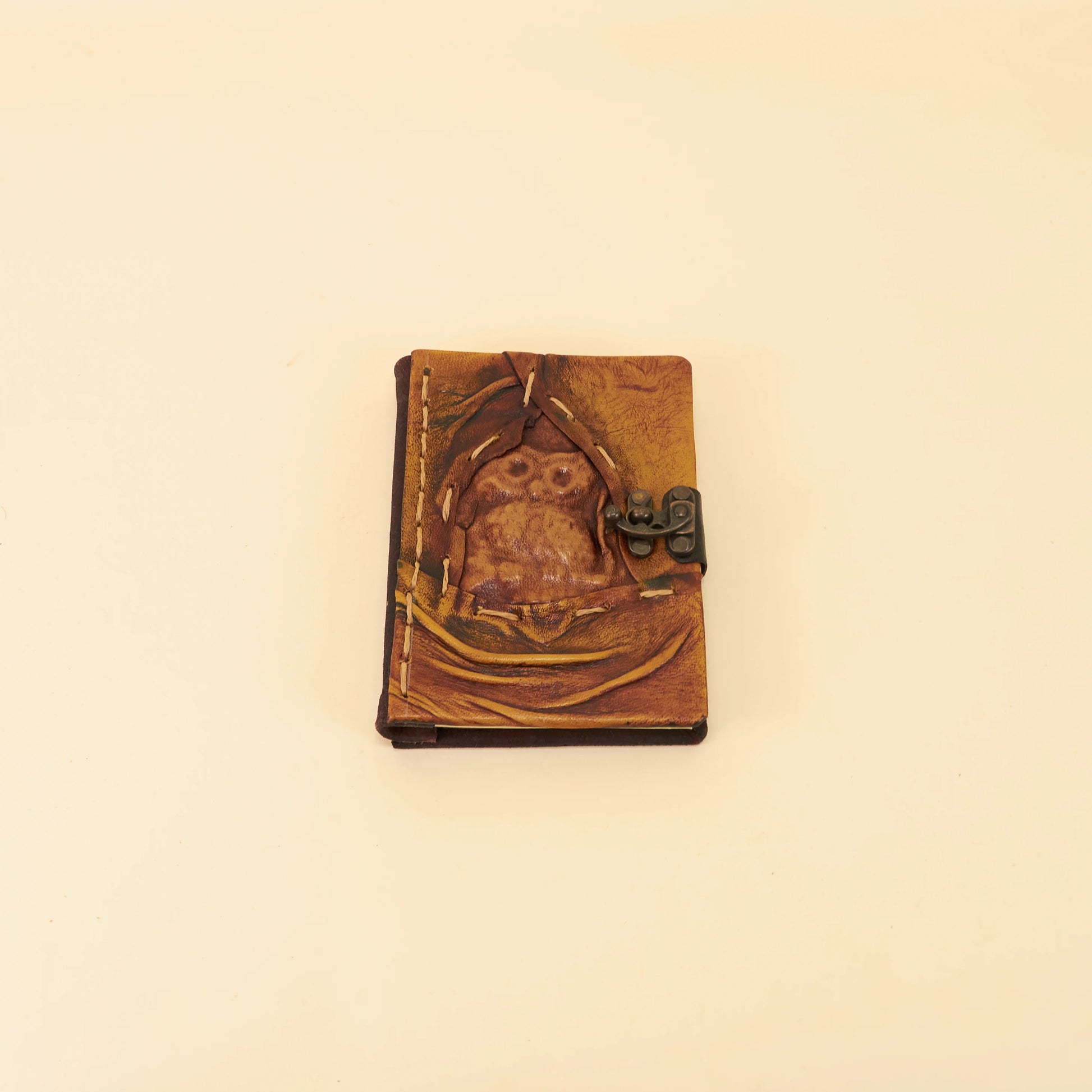 Dit handgemaakte leren dagboek straalt een warme, oosterse sfeer uit. De rijke bruine tinten en het unieke uilendesign maken het een opvallend stuk. Ideaal voor het vastleggen van je dagelijkse avonturen. Laat je inspireren door dit magische dagboek!