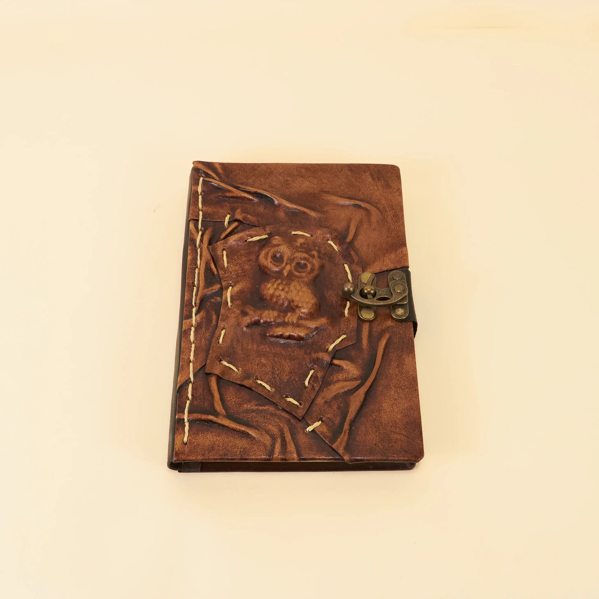 Dit prachtige leren dagboek in formaat L is een eerbetoon aan de wijsheid van de nacht. Met een handgestikte uil op de omslag en een stevige sluiting, biedt het een veilige plek voor je gedachten. Het rijke bruine leer straalt een warme, oosterse charme uit. Perfect voor schrijvers en dromers. Laat je inspireren en schrijf je eigen verhaal.